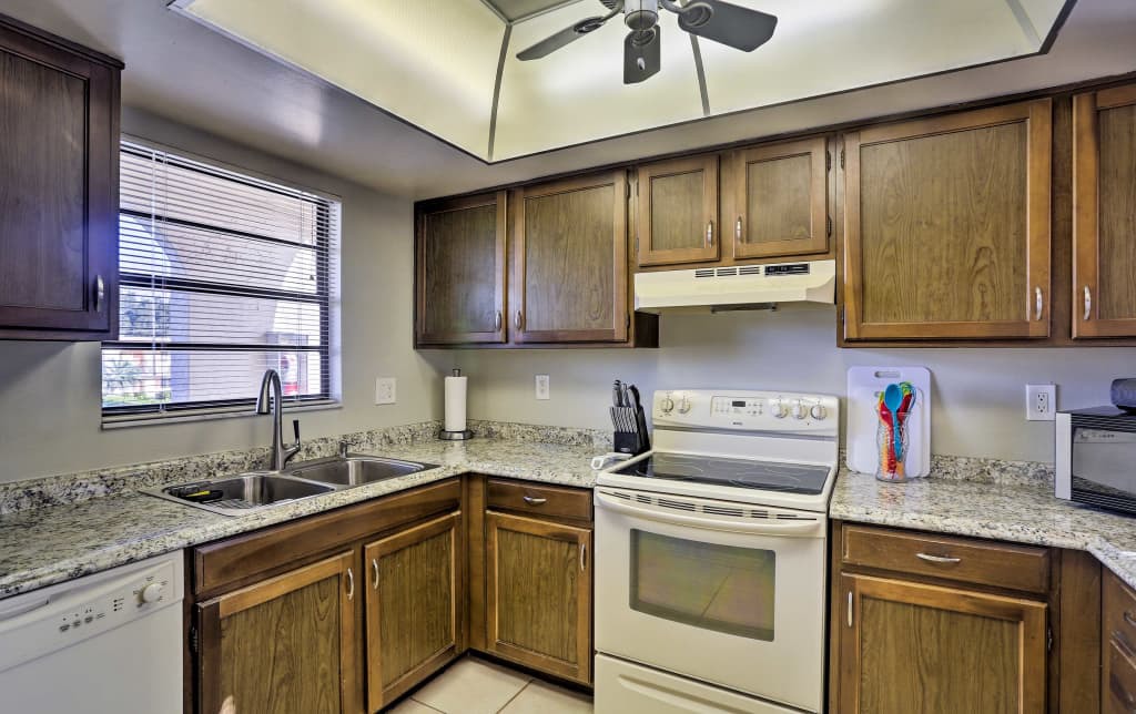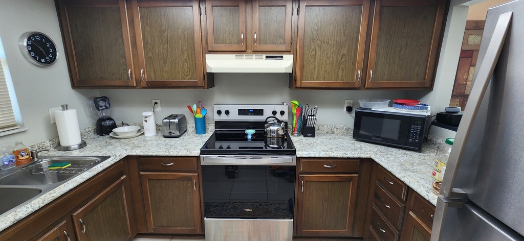 Fully Equipped Kitchen: NEW STAINLESS STEEL APPLIANCES in 2025, microwave, glass-top range, dishwasher, refrigerator, disposal, Keurig