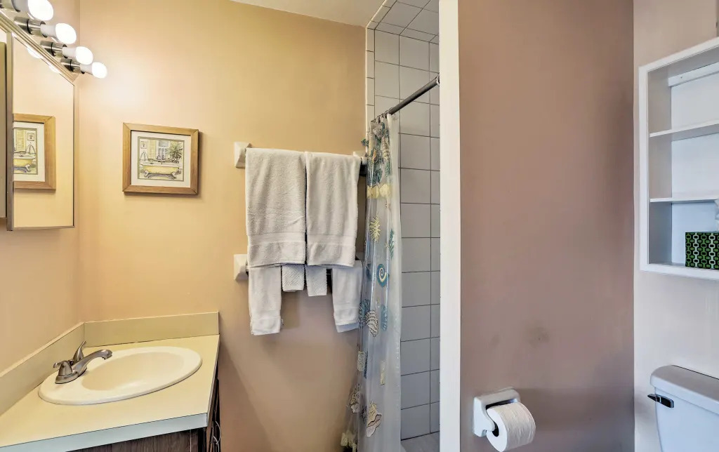 Guest Bath: Tub w/Shower, Vanity, Toilet